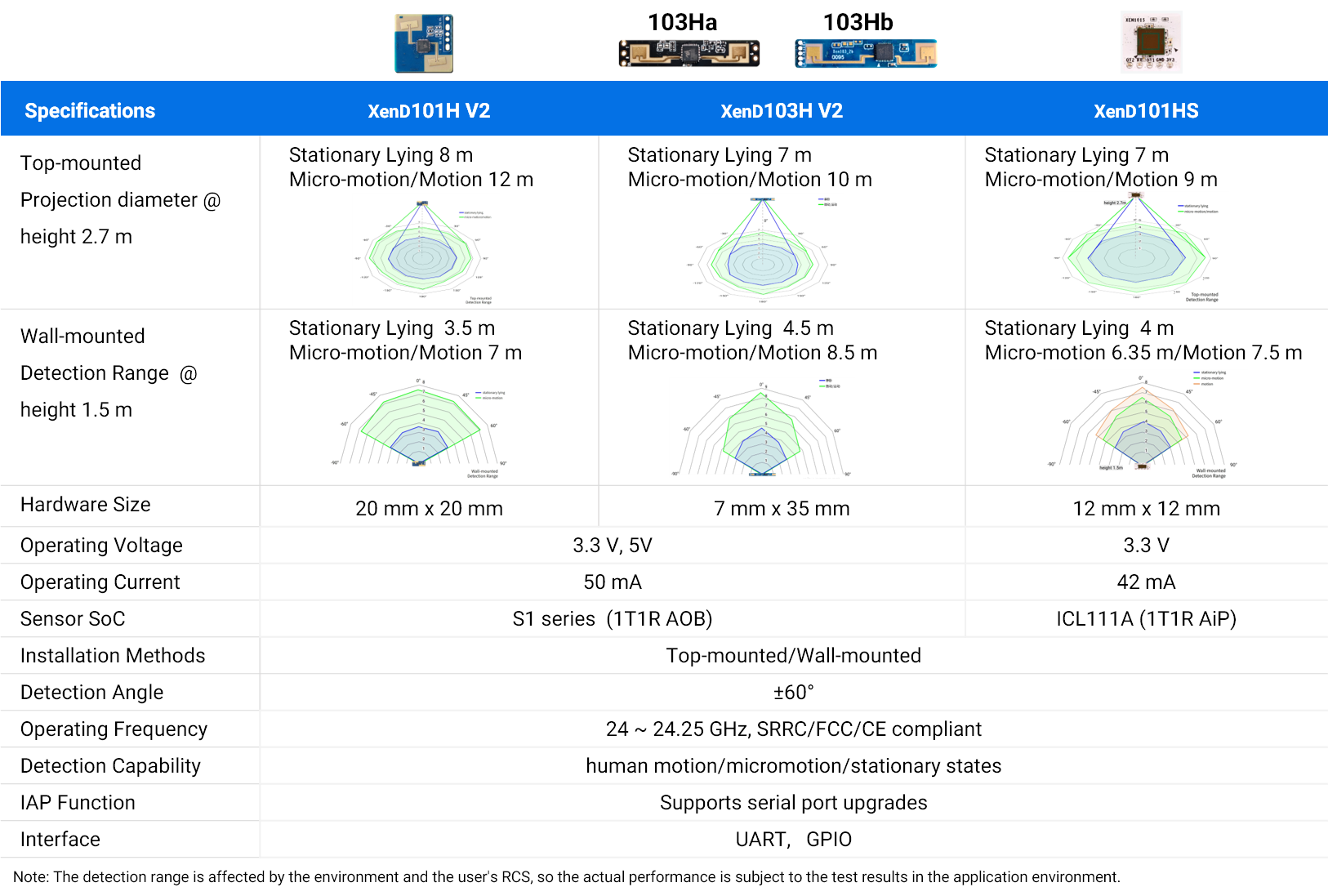 Note: The detection range is affected by the environment and the user's RCS, so the actual performance is subject to the test results in the application environment.