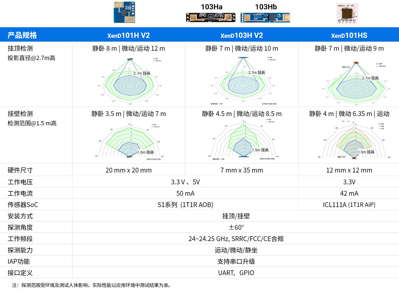 注:探测范围受环境及测试人体影响,实际性能以应用环境中测试结果为准。