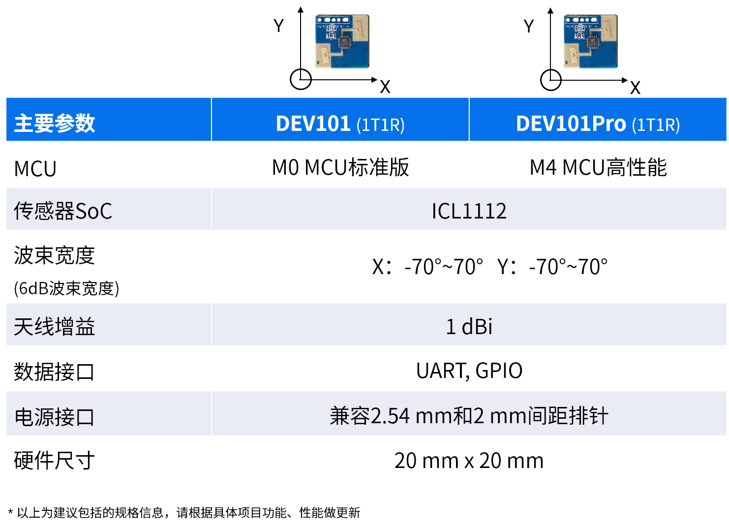 DEV101系列开发套件搭载矽典微1T1R毫米波传感器芯片ICL1112。