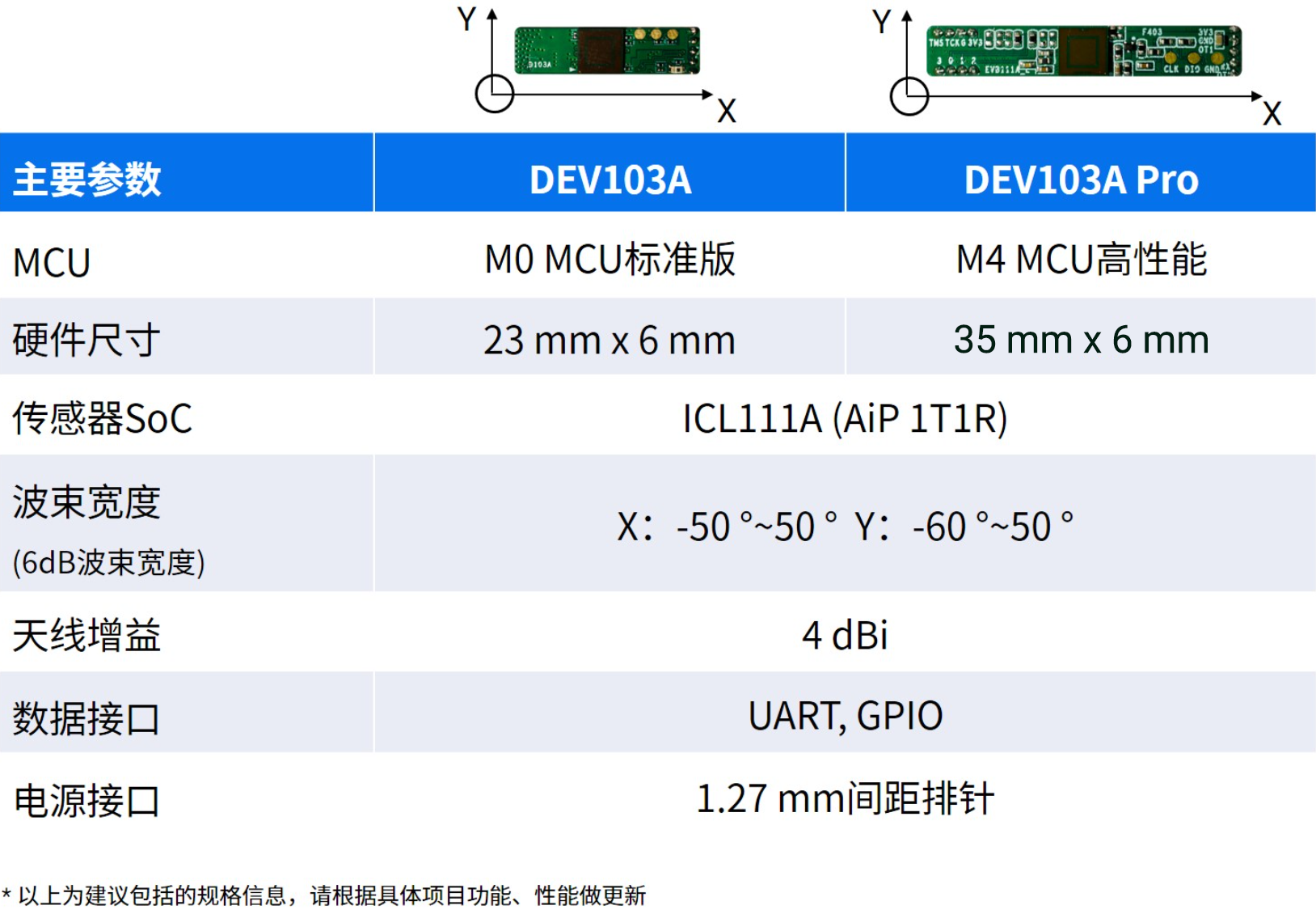 DEV103A开发套件搭载矽典微AiP 1T1R毫米波传感器芯片ICL111A。