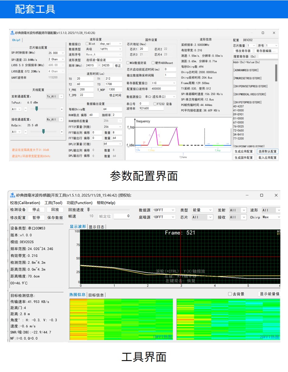 DEV202系列开发套件搭载矽典微 1T2R毫米波传感器芯片ICL1122,搭载性能版 M4 MCU,采用15 mm x 40 mm / 15 mm x 34 mm / 7 mm x 30 mm / 15 mm x 25 mm尺寸设计。